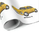 Ein fröhliches, gelbes Oldtimer. Gezeichnet in lustigen Cartoon Stil.