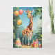 Cartoon Giraffe mit Balloons & Cake| Karte