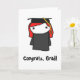 Eine Abschluss-Karte für diese besondere Person! Im Design befindet sich ein rotköpfiges Cartoon in einer Graduierungshülse und einem Kleid. Text hinzufügen, ändern oder entfernen, falls gewünscht.