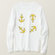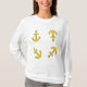 Eine Abbildung eines Set eines goldenen Cartoon-Bootsankers. Segeln Sie Liebe, Kapitän eines Schiffes und der tiefblaue Ozean? Dieses Ankersymboldesign ist eine Geschenkidee für Segler-, Segel- und Meeresplaner.