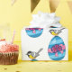 Eine Illustration eines niedlichen Cartoon großen Titten Vogel auf einem blauen Streifen Farbe Osterei mit rosa Band und violetten Blume. Dieses Design ist eine Geschenkidee für Ostereier Jäger Liebhaber, Frühjahrsliebhaber und Hühner oder Cinciallegra Vogelliebhaber.