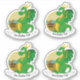 Set von vier ausgeschnittenen Vinyl-Aufklebern mit einer Abbildung eines niedlichen grünen Drachen, der einen Schatz bewacht; Fantasie-Cartoon-Motive für Kinder; mit benutzerdefinierter Textvorlage für den Namen Ihres Kindes oder einer benutzerdefinierten Nachricht