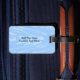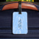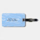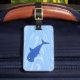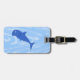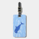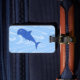 Ein blauer Cartoonhaifisch auf einem hellblauen gewellten Hintergrund.