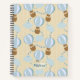Ein schönes Cartoon-Muster mit Heißluftballons und blauen Wolken, verbunden mit hellblauen, dunkelblauen und weißen Perlen. Ein sanfter beigefarbener Hintergrund mit weißen Punkten und einem Abzeichen mit Namen. Personalisieren Sie, indem Sie den Namen ändern.