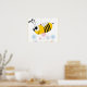 Die pastellblauen, rosa und lila Blumen schmücken eine bezaubernde Cartoon-Hummel in Gelb und Schwarz.