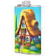 Dieser Kolben hat eine Cartoon-Hütte darauf.