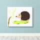 Ein niedlicher zeichn eines Cartoon Igels, der einen Zweig mit Blättern auscheckt. Er ist auf einer Rasenfläche stehend!