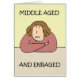 Eine Cartoon-Frau, die sehr kreuz aussieht, mit den Worten "mittelalt und wütend".