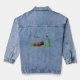 Ein lustiger grüner Frosch, der den Rasen im albernen Cartoon-Stil mäht.