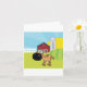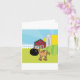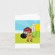 Ein Kalb im Cartoon auf einem Bauernhof mit einer Scheune im Hintergrund. Dieses Design sieht auf dieser Grußkarte wirklich effektiv aus