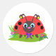 Cartoon Ladybug Bow und Blume Runder Aufkleber