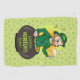 Golftuch mit Illustration eines lächelnden Kobold, der einen grünen Anzug, eine Bogen-Krawatte und einen Bowlerhut trägt, während er in einem Topf aus Gold sitzt und einen Bierpint mit gelbem, grünem und orangefarbenem Regenbogen im Hintergrund hält. Das Bild wird auf einem nahtlosen, hellgrünen Hintergrund mit Kleeblättern platziert. Ein perfektes Design, um den St. Patrick's Day zu feiern!
