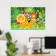 Riesiger, freundlicher und niedlicher Cartoon Liger, der seine Freunde für eine Fahrt mitnimmt :) Löwe, Tiger, Leoparden und sogar ein Schneeleopard geniessen einen Spaziergang mit ihrem übergroßen Kumpel :) in einem bunten, fantastischen magorischen und ich wage es zu sagen psychedelischen Dschungel. Vollständig anpassbar: Das Design ist hochauflösend und das Set bis zu kolossaler Größe (78"x52") zu drucken. Ein Geschenk für Kinder jeden Alters, das auch gerahmt ist:)