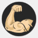 CARTOON MUSCLES MAN kräftiger Arm Bizeps athletisc Runder Aufkleber