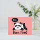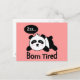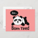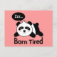 Niedlicher Cartoon Panda schlafend auf seinem Bauch mit der lustigen Beschriftung "Geboren müde". Panda sieht leicht müde aus, weil die schwarzen, dunklen Augenflecken um die Augen herum wie dunkle Augenringe aus Schlafmangel wirken. Für alle, die liebliche Tiere oder lustige Cartoon mögen.