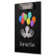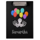 Diese Zwischenablage zeigt die lustige Karikatur Oktopus, der lächelt und acht bunte Ballons in jedem Tentakel hält. Schön und niedlich zurück zur Schule. Personalisieren Sie Ihren Namen auf der Vorder- und Rückseite der Zwischenablage.