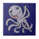 Cartoon-Abbildung eines Oktopus auf einer blauen Kachel. Ändern Sie die Hintergrundfarbe!