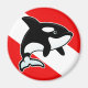 Dieser niedliche Orca- oder Killerwal schwimmt vor einer Tauchflagge. Dies wird ein großartiges Geschenk für Taucher, die Orcas Liebe.