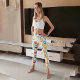 Ein Paar farbenfrohe Cartoon Caps Leggings mit Blätter in einem nahtlosen Muster. Probieren Sie diese Leggings aus und verlass Ihre Kommentare.