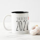 Original Cartoon Comicen Abbildung eines Wasserbüffels + Jahr des Ochsen, Chinesisches Ideogramm für Ox und 2021. Design auf zweifarbiger Tasse. Sie können die Position und Größe des Designs, Textes (Schriftart, Farbe, Größe und Position) einfach ändern, indem Sie auf die Schaltfläche Anpassen klicken. Ideal für Chinesisch oder Vietnamesisch Neujahr des OX 2021 oder Geburtstag (Menschen im Ox Jahr geboren).