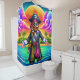 Dieser Duschvorhang hat einen Cartoon-Pirat darauf.