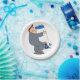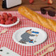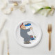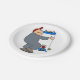 Ein Klempner im Stil eines Cartoon, der einen Wassertank trägt. Dieses Design wirkt auf diese Paper-Teller sehr effektiv