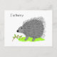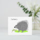 Ein niedlich gedecktes Stachelschwein mit langen Stacheln. Stehend auf einem grünen Grasflächen mit Zweigen und Beeren. Die Meldung "Es tut mir leid" kann nach Wunsch geändert werden.