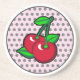 Dekorieren Sie Ihre Bar mit diesem Sandstone Drink Untersetzer mit einem niedlichen Cartoon Set roter Kirschen. Der Hintergrund ist hellrosa. Essen Sie Alltagsobst für Vitamine und Fasern. Es ist gesund für dich. Stütze Frucht, indem du diesen Knopf drückst. Kirschen sind eine typische Sommerfrucht mit der Spitzenerntezeit im Juni und Juli. Es ist eine Lieblingsfrucht für viele Menschen. Man kann es in Gebäck, auf Eis oder einfach mit Sahne essen. Und vergessen Sie nicht, eine Kirsche in Ihre Klinge zu stecken. Cherry Rot ist auch, dass dunkelblühende rote Menschen Liebe so viel.
