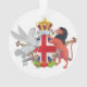 Cartoon Royal Throne Wappen mit Pegasus,Löwe die britische Gewerkschaft Fahne auf einem Schild und eine goldene Krone von Edelsteinen.
