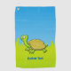 Cartoon Illustration einer glücklichen Schildkröte auf Gras und Himmelshintergrund. Benutzerdefinierter Text