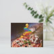 Cartoon Schlafende Kuh auf Pizza Postkarte