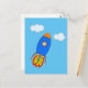 Cartoon Space Rocket in Blue Sky Postkarte