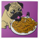 Adorable Mops schlürfen eine Schüssel Spaghetti. Ein tolles Geschenk für Mops-Liebhaber.