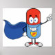 Eine Kapsel, die wie eine Zeichentrickfigur verkleidet ist. Dieses Design sieht auf diesem Poster wirklich effektiv aus