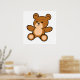 Ein weißes Poster mit einem niedlich lächelnden braunen Teddybär aus Cartoon mit einer bunten Polsterung mit ausgestreckten Armen. Dieses Produkt wurde so formatiert, dass Sie Ihren eigenen Hintergrund anpassen können.