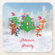 Cartoon Tiere tanzen um den Weihnachtsbaum herum Rechteckiger Pappuntersetzer
