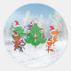 Cartoon Tiere tanzen um den Weihnachtsbaum herum Runder Aufkleber