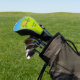 Cartoon-Illustration einer glücklichen Schildkröte auf Gras und Himmel Hintergrund. Eigener Text.