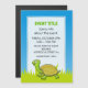 Cartoon-Abbildung einer glücklichen Schildkröte, die unter blauem Himmel auf grünem Gras spaziert.