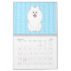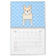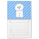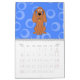 Ein Spaßkalender für 2014 kennzeichnende niedliche Cartoonhunde. Die Hintergrundmuster sind in den Schatten des Blaus.