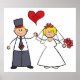 Cartoon Wedding Couple Bride & Groom Red Heart Poster