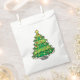 Cartoon schmückte den Weihnachtsbaum mit goldenen Ziergegenständen, roten Bögen und Lichtern.