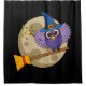 Cartoon Wizard Owl Flying on Broom Duschvorhang