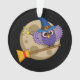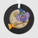 Cartoon wizard owl flying on magic broom in full moon night. The violet owl is wearing a wizard hat and big round eyegasse and casting a spell with a magic wand. Perfekt for Halloween or wizards, witches and magic lovers.