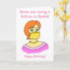 Funny cartoon of a woman wearing a face mask. Text reads 'NAME was saving a fortune on lipstick' and 'Happy Birthday' and inside the card says 'Enjoy your special day'. Easily edit any of the text boxes to personalise this card or change the message or remove Happy Birthday. The woman is wearing a yellow face mask with white stars and a pink dress. Thanks for viewing my designs!