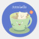 Cartoon-Zeichen für den niedlichen Teebag-Becher S Runder Aufkleber