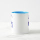 Dieses entzückendes Blau schattierte Einhorn läuft oben zwischen die Sterne. Blaue Sterne sind über und unten. Der Entwurf wird auf beiden Seiten wiederholt. Bild ©T.A.Paxton, habe ich die Version mit Pulverblaukante gewählt und behandele, um den blauen Unicorn und die Sterne zu betonen, aber die Tasse ist mit Raum für einen Namen oder ein Ändern der Art völlig kundengerecht.