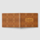 Rustikales Gästebuch mit Grafiken aus geschnitzten Holzpaneelen und einem ovalen Holztext. Graphics wood look text liest Guest Book. Personalisieren Sie den individuellen dunkelbraunen Text, um Ihre Hochzeitsbedürfnisse Anzug.