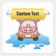Ein fröhliches, schwein geformtes Cartoon, das mit Pinsel und Wasserspritze gewaschen wird.