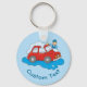 Cartoon eines blauen Mannes Hand waschen ein rotes Auto. Benutzerdefinierte Hintergrundfarbe. Benutzerdefinierter Text auf beiden Seiten.